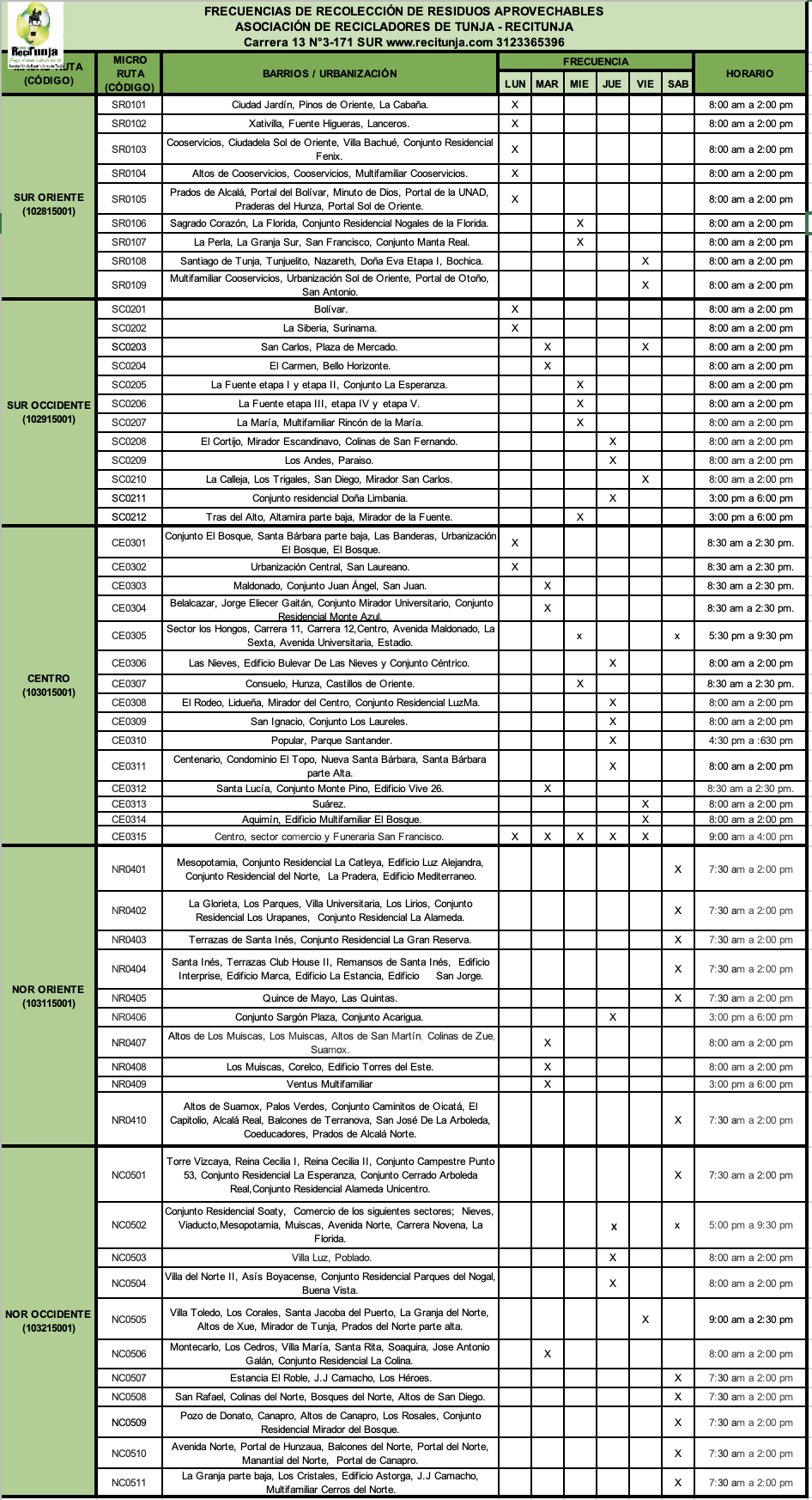 Recuerda que en la ciudad tenemos implementada la ruta selectiva con los días y horarios establecidos en los siguientes barrios: